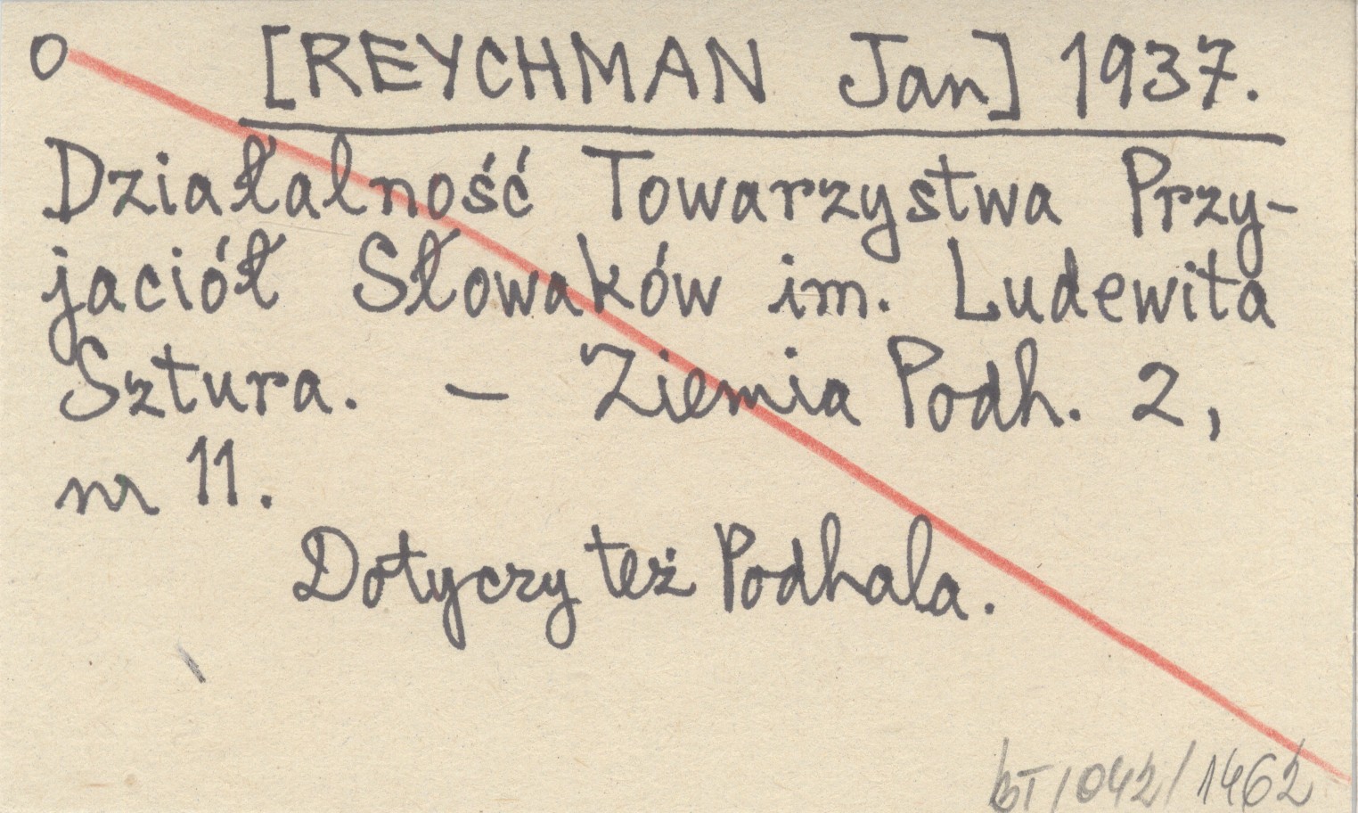 [REYCHMAN Jan] 1937 Działalność Towarzystwa Przyjaciół Słowaków im. Ludewita Sztura.