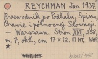 J. R. [REYCHMAN Jan] 1937 Na Spiszu i na Orawie.