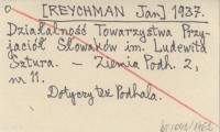 [REYCHMAN Jan] 1937 Działalność Towarzystwa Przyjaciół Słowaków im. Ludewita Sztura.