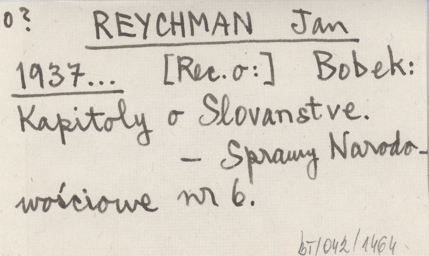 REYCHMAN Jan 1937... Bobek: Kapitoly o Slovanstve.