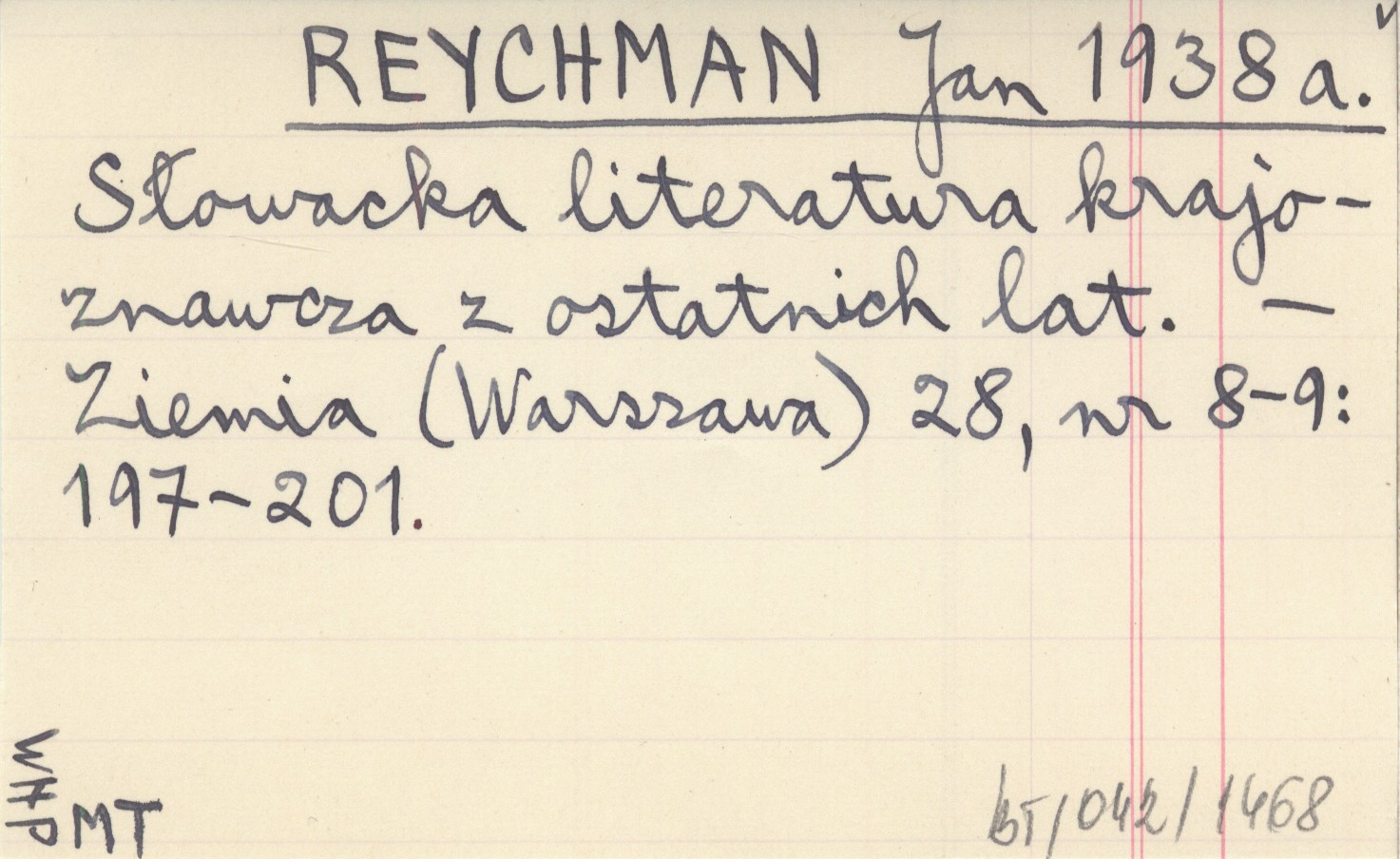 REYCHMAN Jan 1938 a Słowacka literatura krajoznawcza z ostatnich lat.