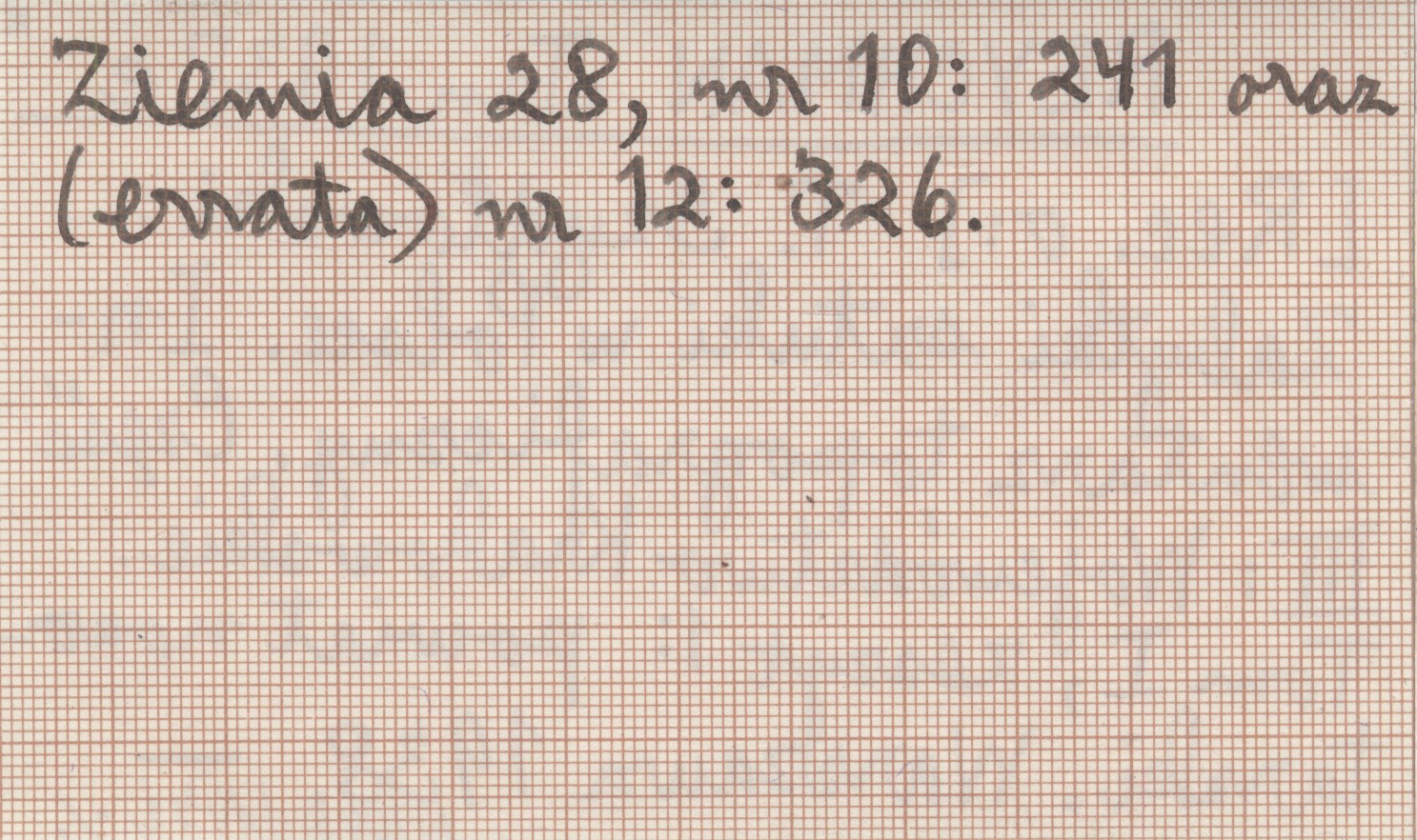 Ziemia, 28, nr 10: 241 ; nr 12: 326 (err.). [Rec. o:]