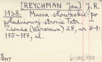 J. R. [REYCHMAN Jan] 1938 Muzea s³owackie po po³udniowej stronie Tatr.