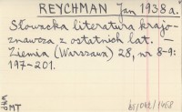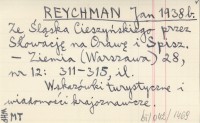 REYCHMAN Jan 1938 a S³owacka literatura krajoznawcza z ostatnich lat.