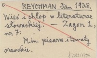 REYCHMAN Jan 1938 Wie¶ i ch³op w literaturze s³owackiej.