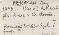 REYCHMAN Jan 1938... A. Kavulják: Orava v 13. storoči.
