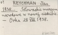 REYCHMAN Jan 1938... Słowackie muzeum narodowe w nowej siedzibie.