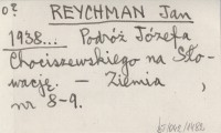 REYCHMAN Jan 1938... Podróż Józefa Chociszewskiego na Słowację.