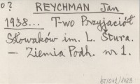 REYCHMAN Jan 1938... T-wo Przyjaciół Słowaków im. L. Štura.
