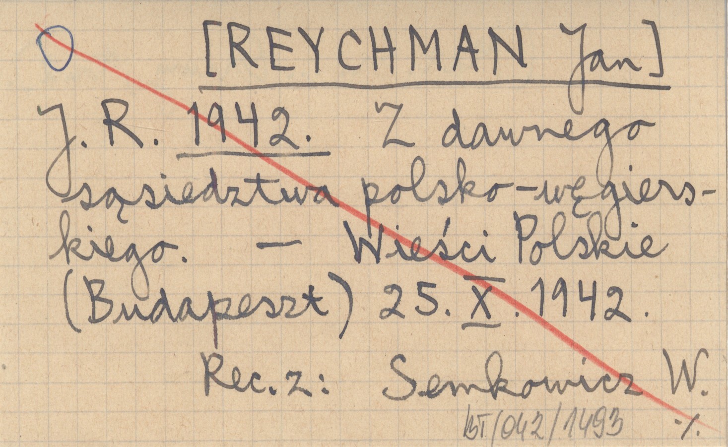 J. R. [REYCHMAN Jan] 1942 Z dawnego sąsiedztwa polsko-węgierskiego.