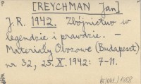 J. R. [REYCHMAN Jan] 1942 Zbójnictwo w legendzie i prawdzie.