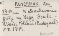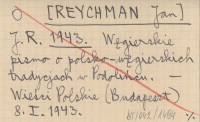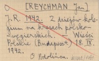 J. R. [REYCHMAN Jan] 1943 Węgierskie pismo o polsko-węgierskich tradycjach w Podolińcu.