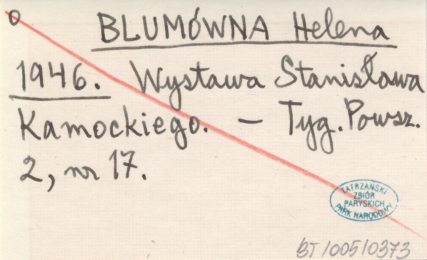 BLUMÓWNA Helena 1946 Wystawa Stanisława Kamockiego.