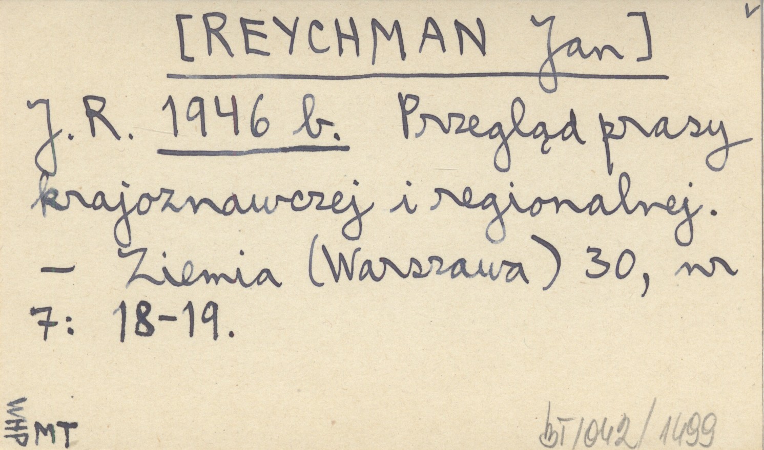 J. R. [REYCHMAN Jan] 1946 b Przegląd prasy krajoznawczej i regionalnej.
