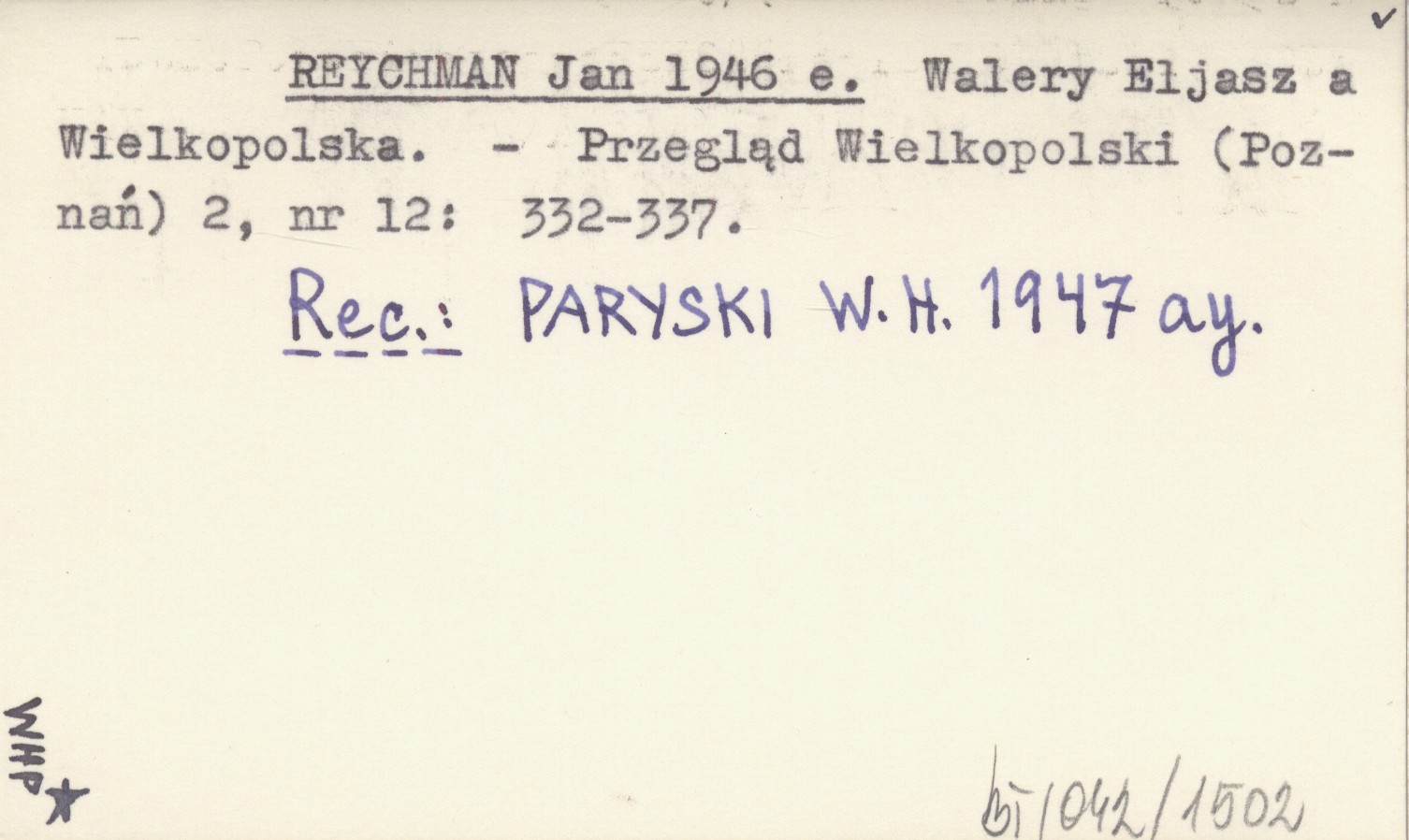 Przegląd Wielkopolski (Poznań) , 2, nr 12: 332-337. REC: PARYSKI W. H. 1947 ay