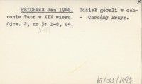 REYCHMAN Jan 1946 Udział górali w ochronie Tatr w XIX wieku.