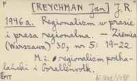 J. R. [REYCHMAN Jan] 1946 a Regionalizm w prasie i prasa regionalna.