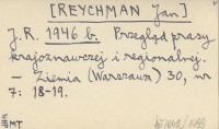 J. R. [REYCHMAN Jan] 1946 b Przegląd prasy krajoznawczej i regionalnej.