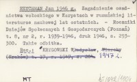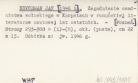 REYCHMAN Jan [1946 h] Zagadnienie osadnictwa wołoskiego w Karpatach w rumuńskiej literaturze naukowej lat ostatnich.