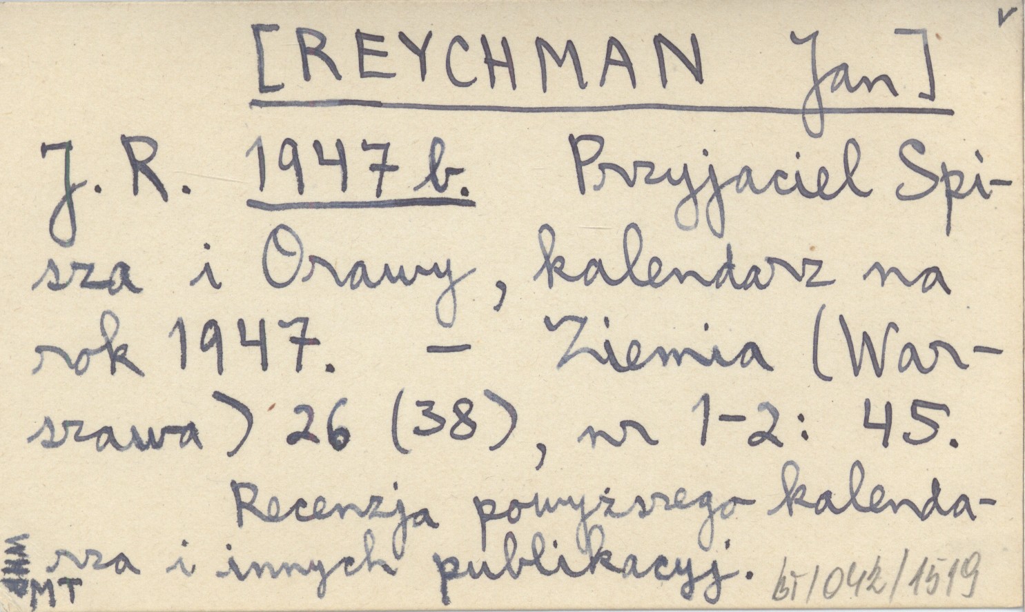 J. R. [REYCHMAN Jan] 1947 b Przyjaciel Spisza i Orawy, kalendarz na rok 1947.