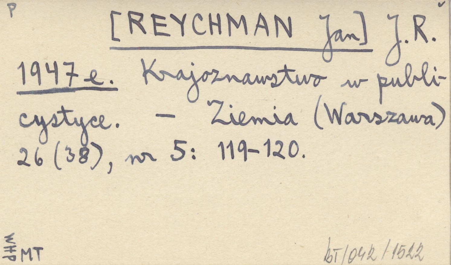 J. R. [REYCHMAN Jan] 1947 e Krajoznawstwo w publicystyce.