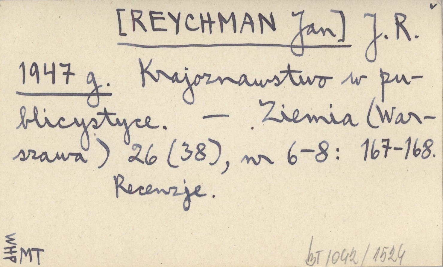 J. R. [REYCHMAN Jan] 1947 g Krajoznawstwo w publicystyce.