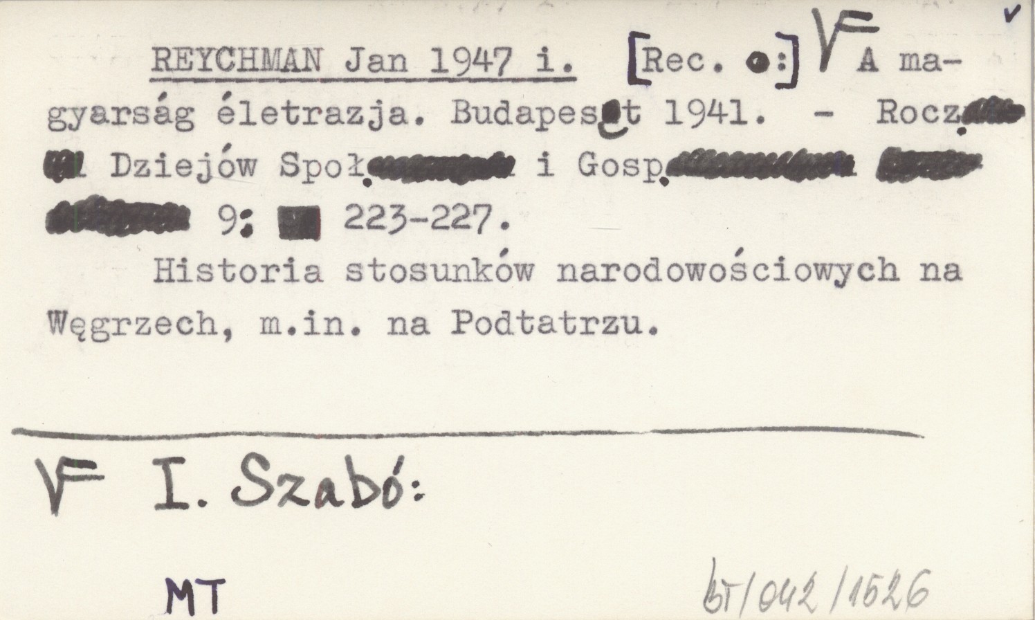 REYCHMAN Jan 1947 i I. Szabó: A magyarság életrazja. Budapest 1941.