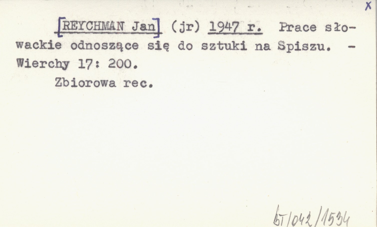 (jr) [REYCHMAN Jan] 1947 r Prace słowackie odnoszące się do sztuki na Spiszu.
