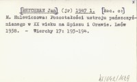 (jr) [REYCHMAN Jan] 1947 l M. Hulewiczowa: Pozostałości ustroju pańszczyźnianego w XX wieku na Spiszu i Orawie. Lwów 1938.