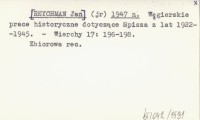 (jr) [REYCHMAN Jan] 1947 n Węgierskie prace historyczne dotyczące Spisza z lat 1922-1945.