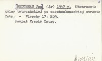 (jr) [REYCHMAN Jan] 1947 y Utworzenie gminy tatrzańskiej po czechosłowackiej stronie Tatr.