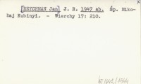 J. R. [REYCHMAN Jan] 1947 ab Śp. Mikołaj Kubinyi.