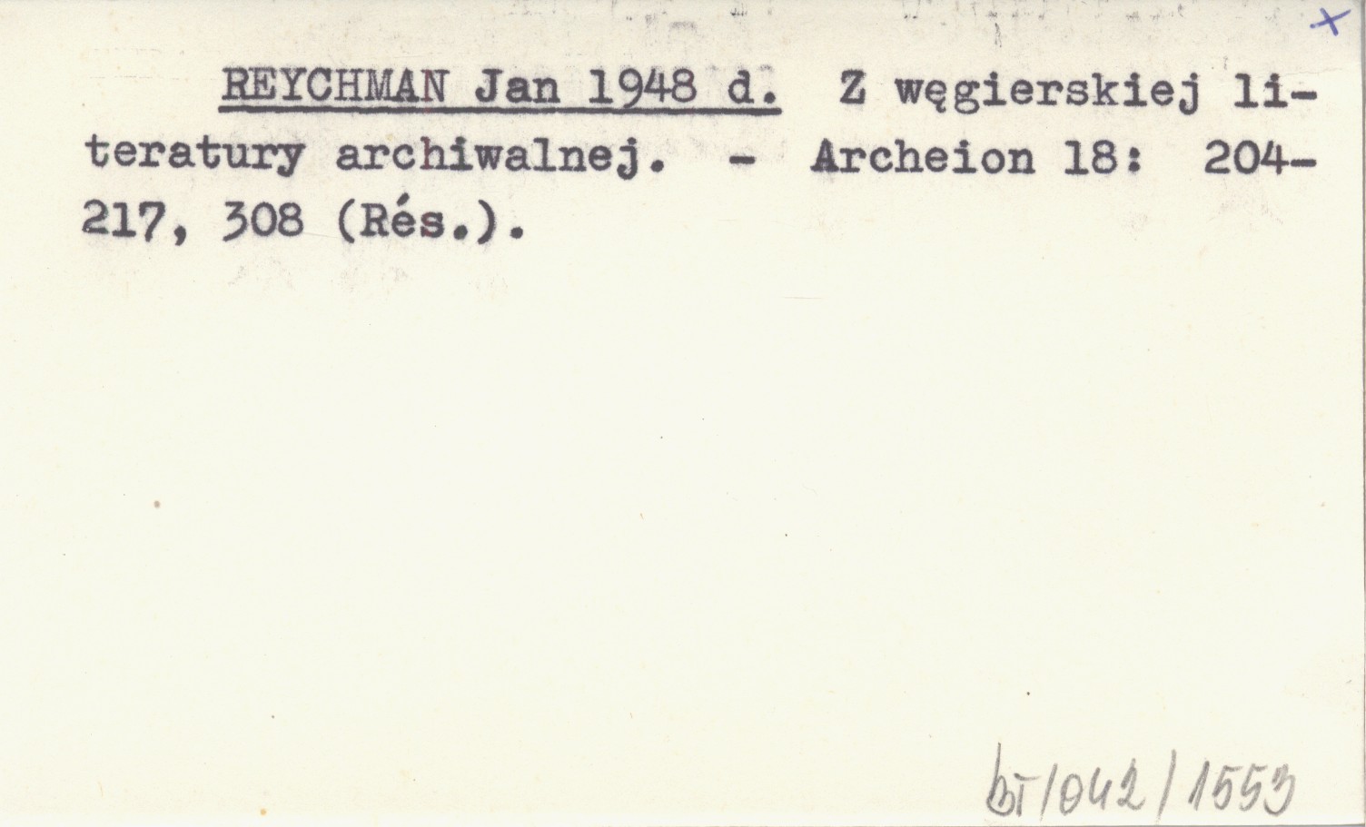 REYCHMAN Jan 1948 d Z węgierskiej literatury archiwalnej.
