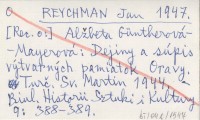 REYCHMAN Jan 1947 Alžbeta Güntherová-Mayerová: Dejiny a súpis výtvarných pamiatok Oravy. Turč. Sv. Martin 1944.
