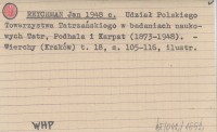 REYCHMAN Jan 1948 c Udział Polskiego Towarzystwa Tatrzańskiego w badaniach naukowych Tatr, Podhala i Karpat (1873-1948).
