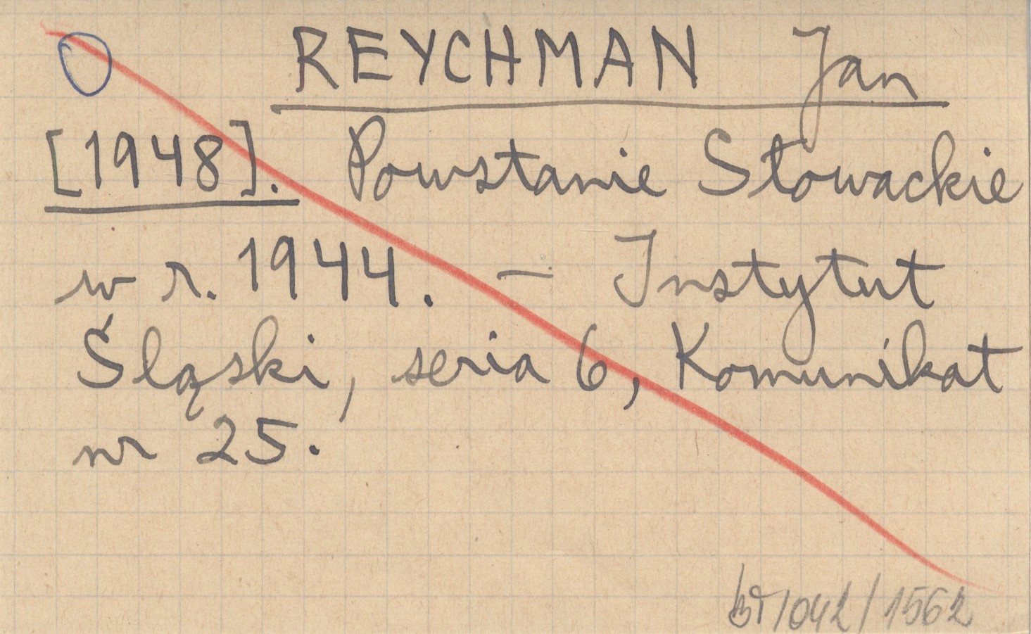 REYCHMAN Jan [1948] Powstanie Słowackie w r. 1944.