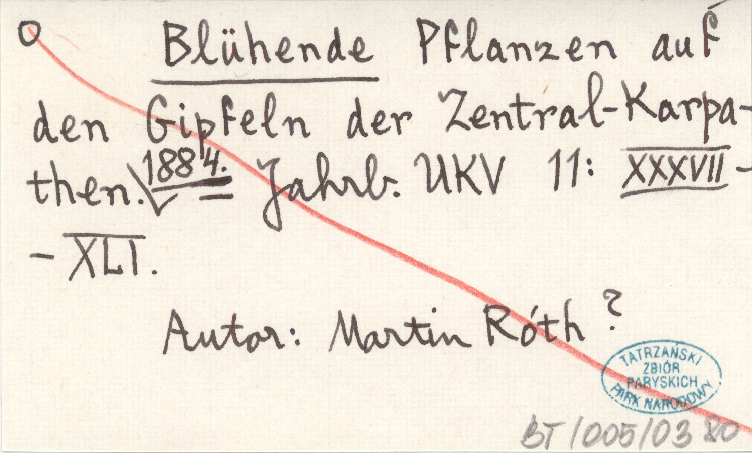 Jahrb. UKV, 11: XXXVII-XLI. Autor: Martin Róth?