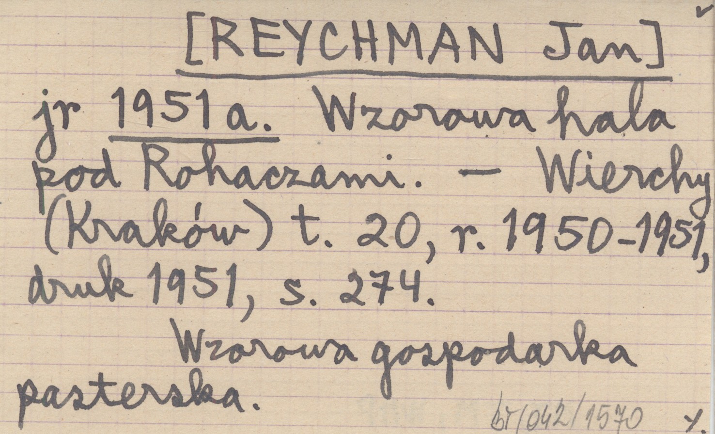 jr [REYCHMAN Jan] 1951 a Wzorowa hala pod Rohaczami.
