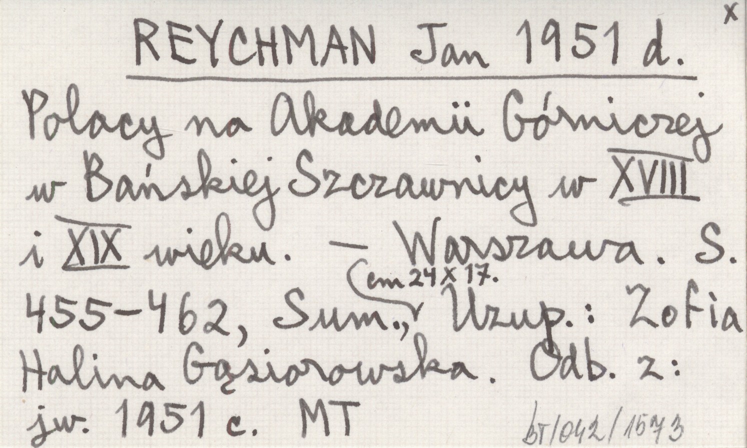 REYCHMAN Jan 1951 d Polacy na Akademii Górniczej w Bańskiej Szczawnicy w XVIII i XIX wieku.