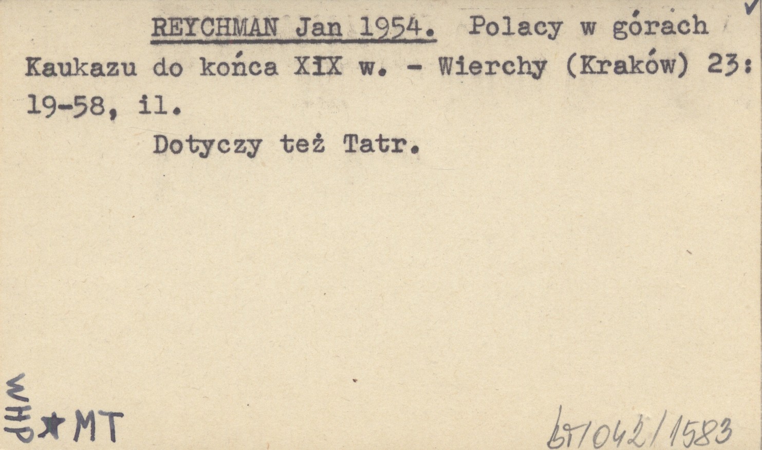 REYCHMAN Jan 1954 Polacy w górach Kaukazu do końca XIX w.