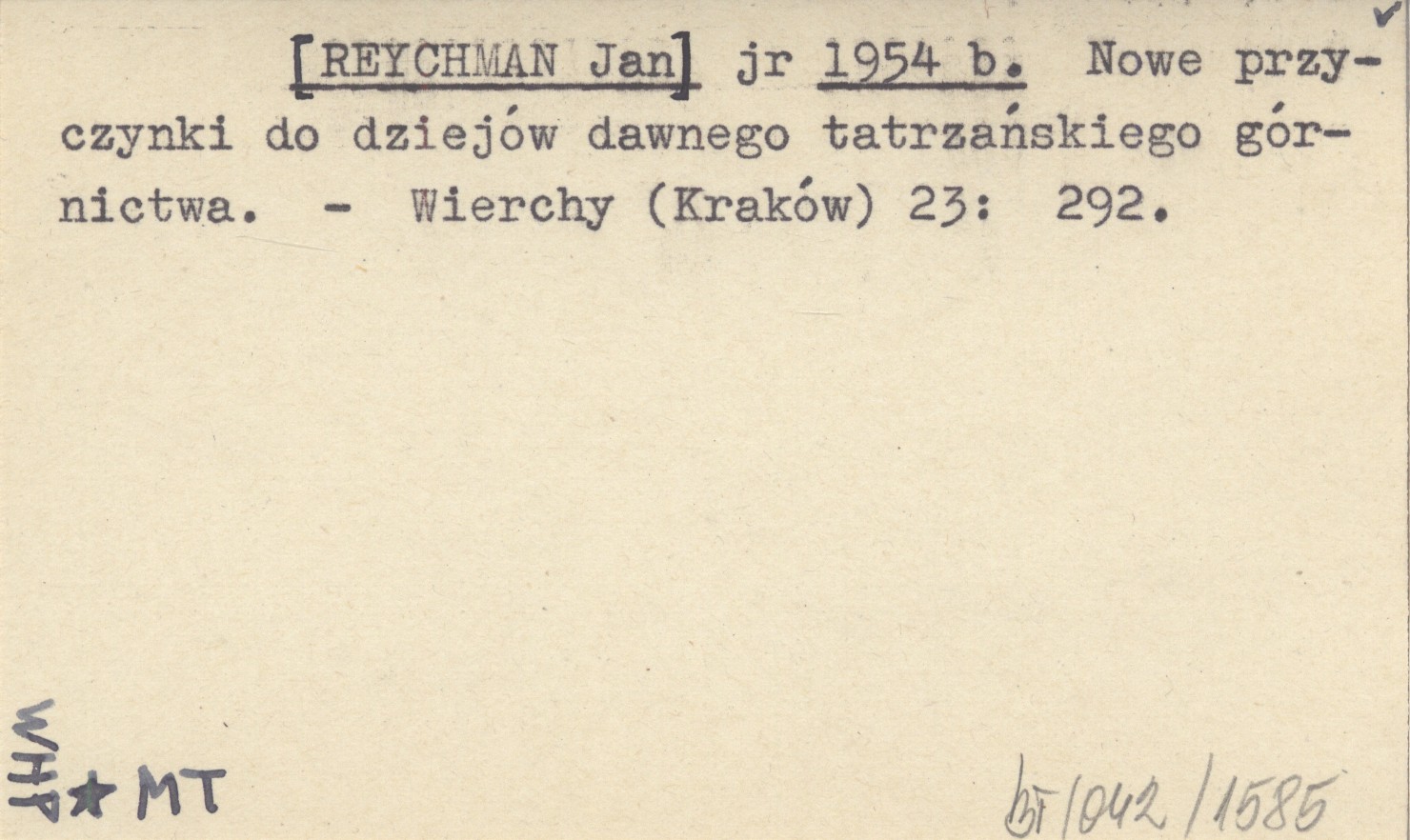 jr [REYCHMAN Jan] 1954 b Nowe przyczynki do dziejów dawnego tatrzańskiego górnictwa.