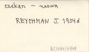 REYCHMAN Jan 1954 d W sprawie pochodzenia wyrazu czekan.