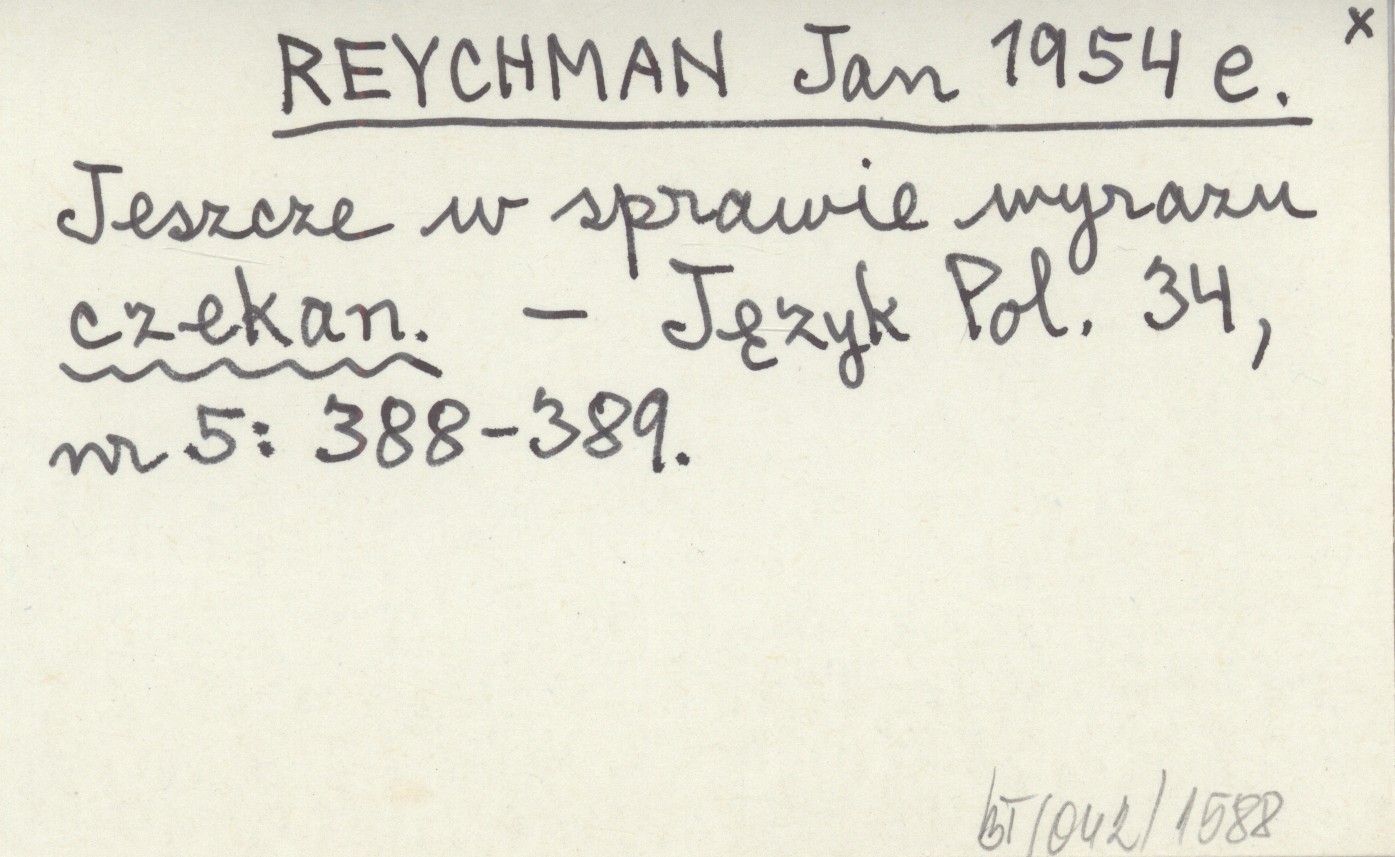 REYCHMAN Jan 1954 e Jeszcze w sprawie wyrazu czekan.