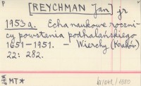 jr [REYCHMAN Jan] 1953 a Echa naukowe rocznicy powstania podhalańskiego 1651-1951.