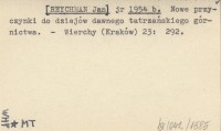 jr [REYCHMAN Jan] 1954 b Nowe przyczynki do dziejów dawnego tatrzańskiego górnictwa.