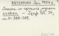 REYCHMAN Jan 1954 d W sprawie pochodzenia wyrazu czekan.
