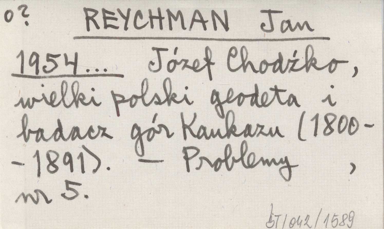 REYCHMAN Jan 1954... Józef Chodźko, wielki polski geodeta i badacz gór Kaukazu (1800-1891).