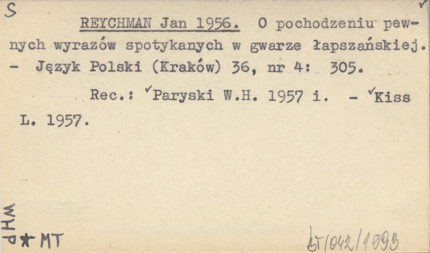 Język Polski (Kraków) , 36, nr 4: 305. REC: PARYSKI W.H. 1957 i ; KISS L. 1957 ;