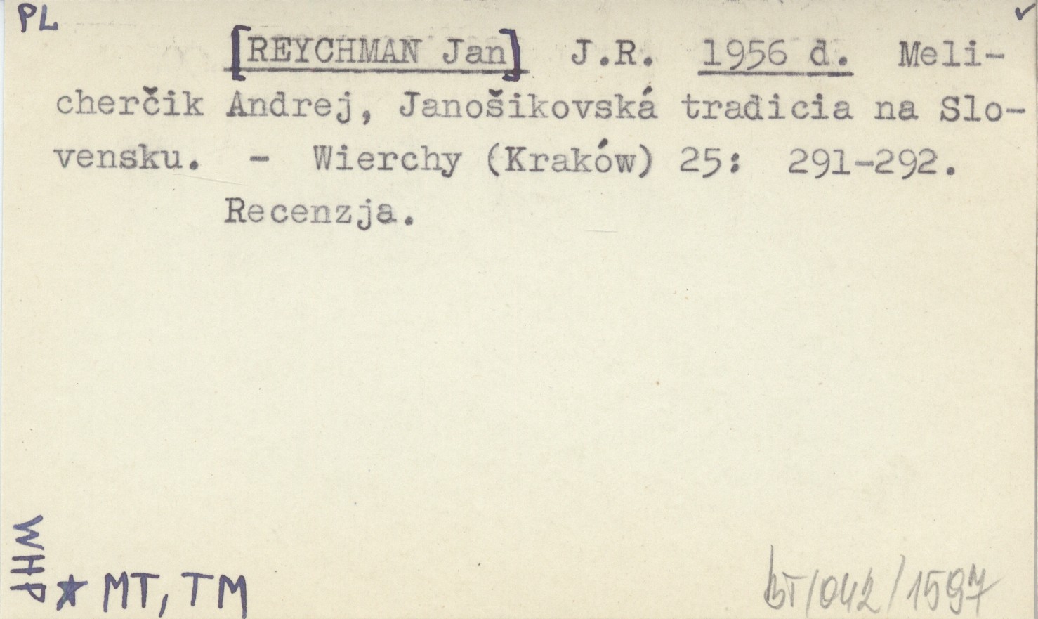 J.R. [REYCHMAN Jan] 1956 d Melicherčik Andrej, Janošikovská tradicia na Slovensku.