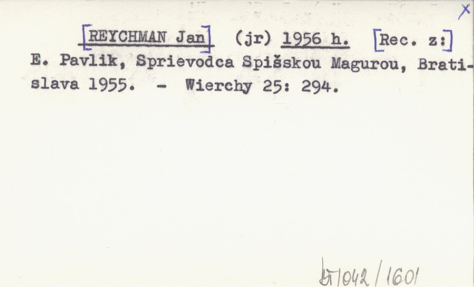 (jr) [REYCHMAN Jan] 1956 h E. Pavlik, Sprievodca Spišskou Magurou, Bratislava 1955.
